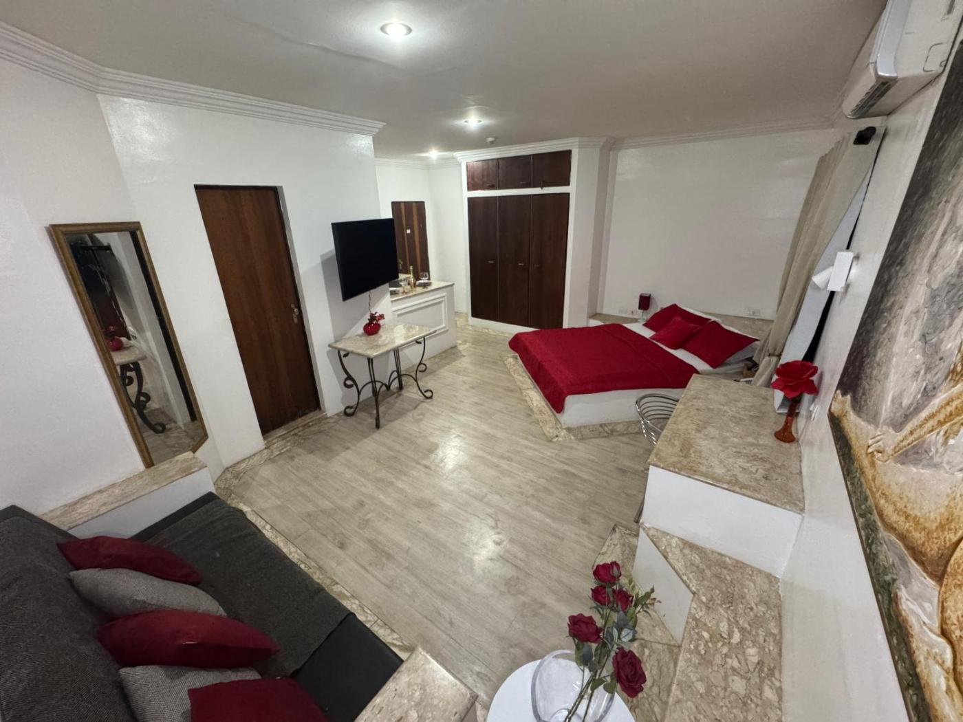 Large Double Room. The double room provides air conditioning, a minibar, as well as a private bathroom featuring a shower. This double room features a wardrobe, a tiled floor and a TV. The unit offers 1 bed.