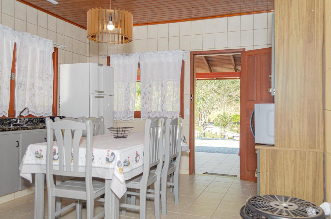Situated in Anitápolis, Casa de campo c lareira, jogos e piscina aquecida features air-conditioned accommodation with a balcony and free WiFi. This holiday home provides a garden.