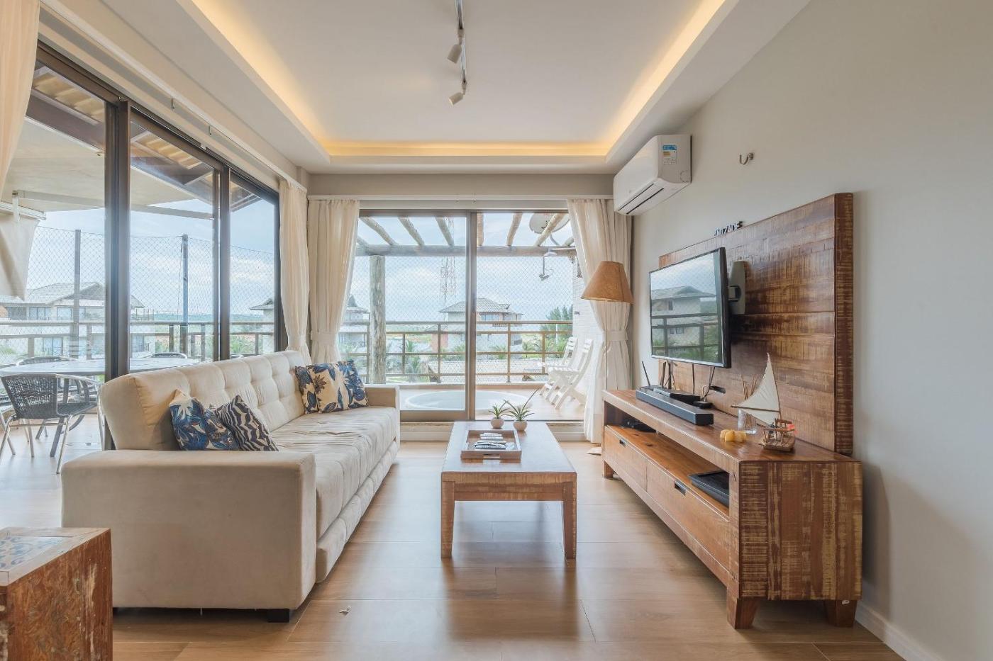 Facing the seafront in Aquiraz, Beach Place 302 - ApĂȘ com Jacuzzi by Carpediem is an apartment, boasting an outdoor pool and parking on-site. Providing a restaurant, the property also has a garden, as well as a hot tub and a hammam. Offering free WiFi throughout the property, the non-smoking apartment has a sauna.