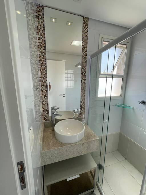 Located in Bertioga, Apartamento em Bertioga, Frente Mar, Vila Clais offers a patio with sea and mountain views, as well as a year-round outdoor pool, sauna and steam room. This beachfront property offers access to a balcony, a pool table, free private parking and free WiFi. The accommodation provides a 24-hour front desk and a lift for guests.