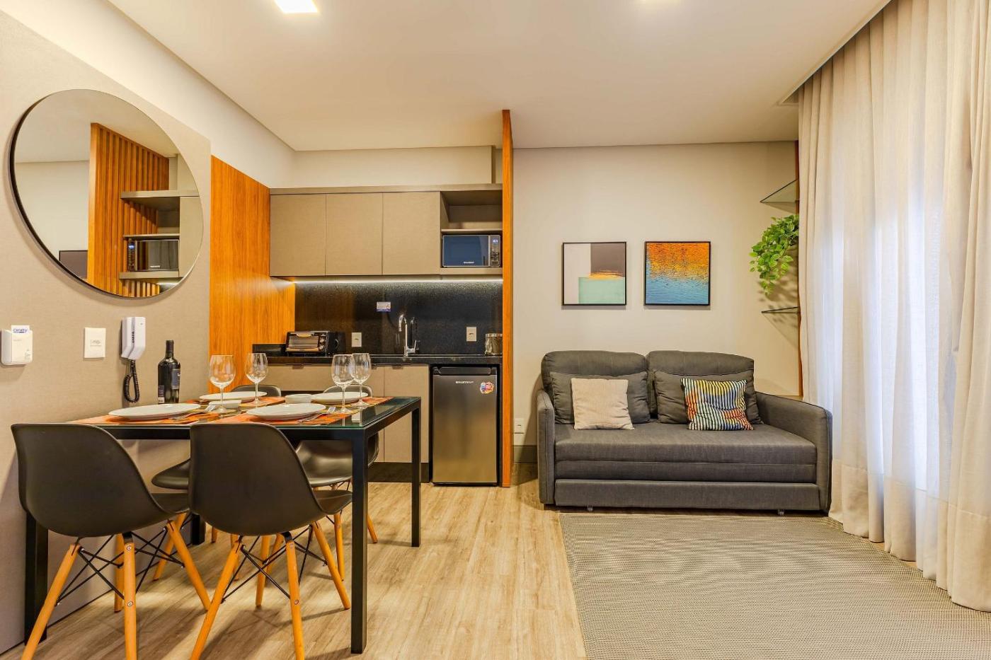Confortável Loft em CondomÃnio com Piscina is situated in Bombinhas, less than 1 km from Bombinhas Panoramic View Park, 19 km from Itapema Bus Station, as well as 35 km from Camelódromo Balneário Camboriú. This apartment provides free private parking, a lift and free WiFi. The property is non-smoking and is located 200 metres from Bombinhas Beach.