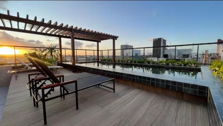 Featuring air-conditioned accommodation with a rooftop pool, quiet street view and a terrace, FLAT Intermares HUB 105 is located in Cabedelo. It is situated 600 metres from Intermares Beach and features a lift. The apartment also provides free WiFi, free private parking and facilities for disabled guests.