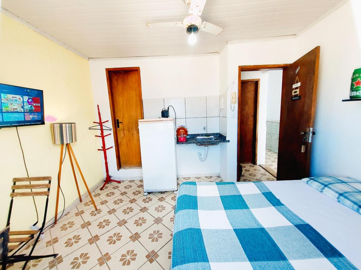 Located in Cabo Frio in the Rio de Janeiro State region, SuĂte Casal com Ar TV e Frigobar features a terrace andcourtyard views. The apartment,in a building dating from 1980, is 1.1 km from Municipal Estadium Alair Correia and 2 km from Dunes Park. Free WiFi is available throughout the property and Praia do Forte is 2 km away.