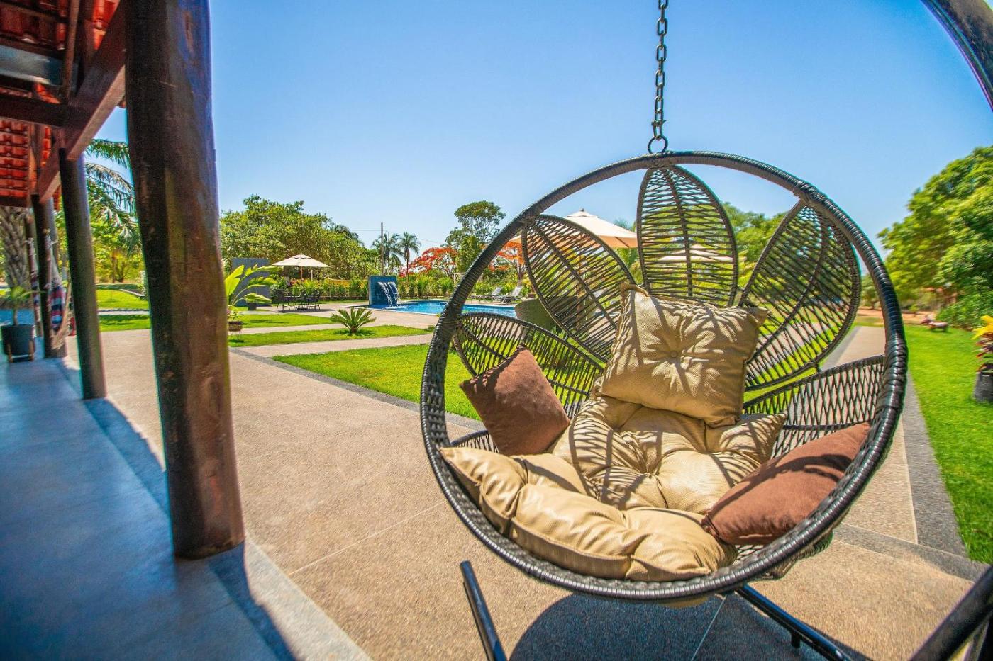 Located in Caldas Novas, Refúgio de Lazer: Chácara c Espaço e Conforto provides accommodation with private pool, free WiFi and free private parking for guests who drive. The air-conditioned accommodation is 1.9 km from Acqua Park Di Roma. Hot Park is 27 km away and Liberty Square is 1.8 km from the farm stay.