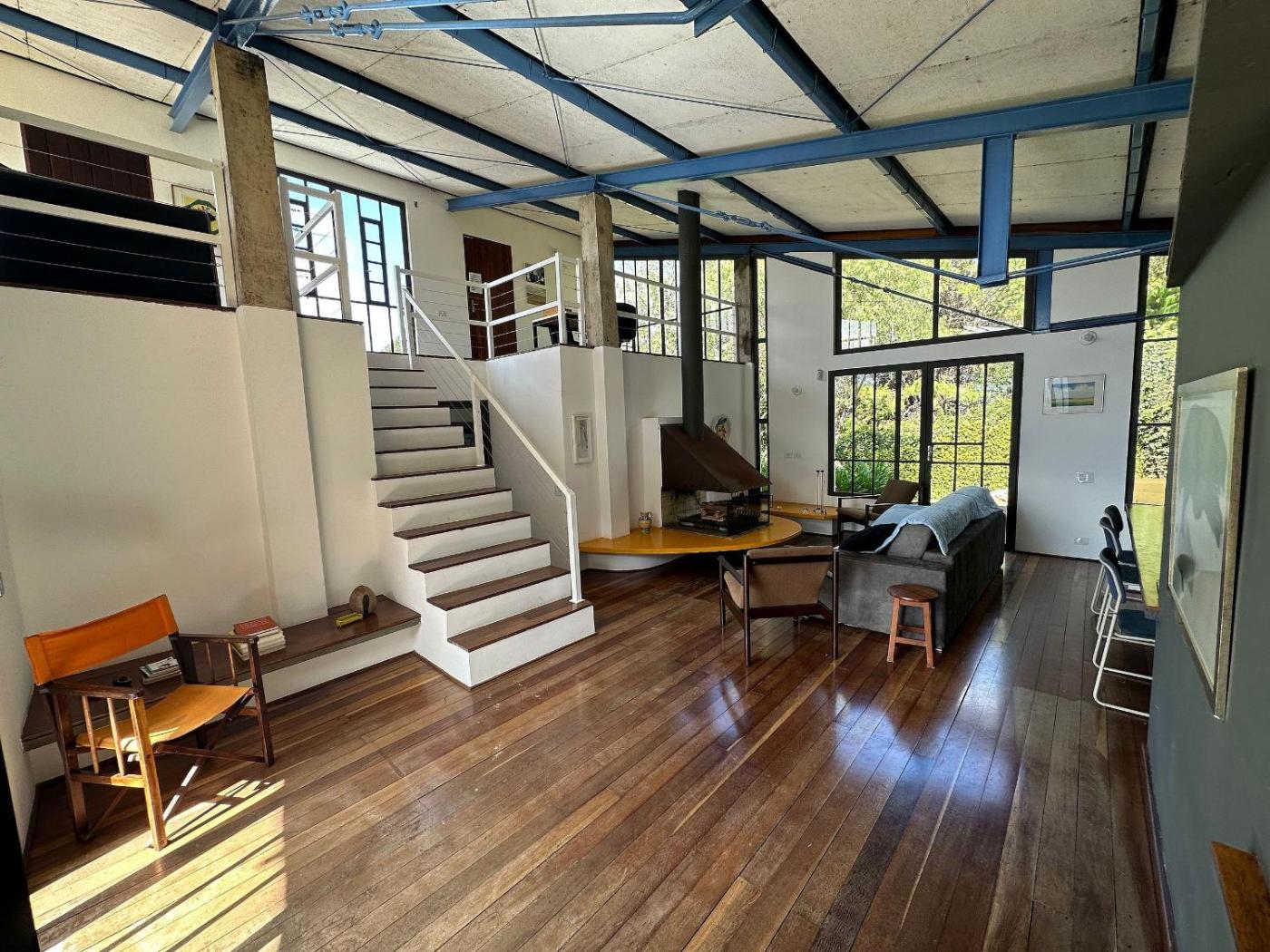 Casa de arquiteto com vista, jardim e lareira