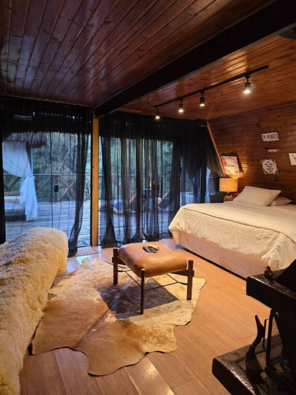 Chalét com jacuzzi sauna lareira e telao cinema