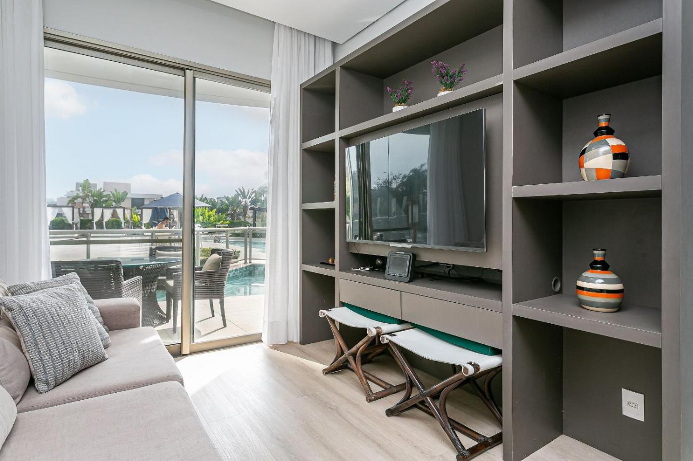 350m da Praia de Jurerê | Piscina #JA36, a property with a garden, is located in Florianópolis, 22 km from Iguatemi Florianopolis Shopping Mall, 35 km from Campeche Island, as well as 15 km from Waterpark Água Show. The air-conditioned accommodation is 17 km from Floripa Mall, and guests can benefit from on-site private parking and complimentary WiFi. The apartment features an outdoor swimming pool and a lift.