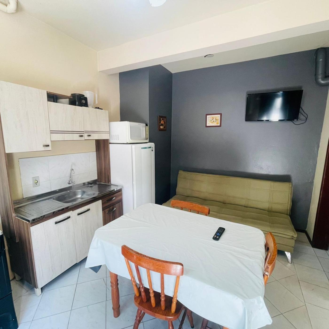 Apartments at Apart da Cachoeira feature a living room with a TV and a full kitchen with a refrigerator and a dining table. Some rooms have a garden view. Extras include a fan. Some of the rooms have a balcony with barbecue facilities.