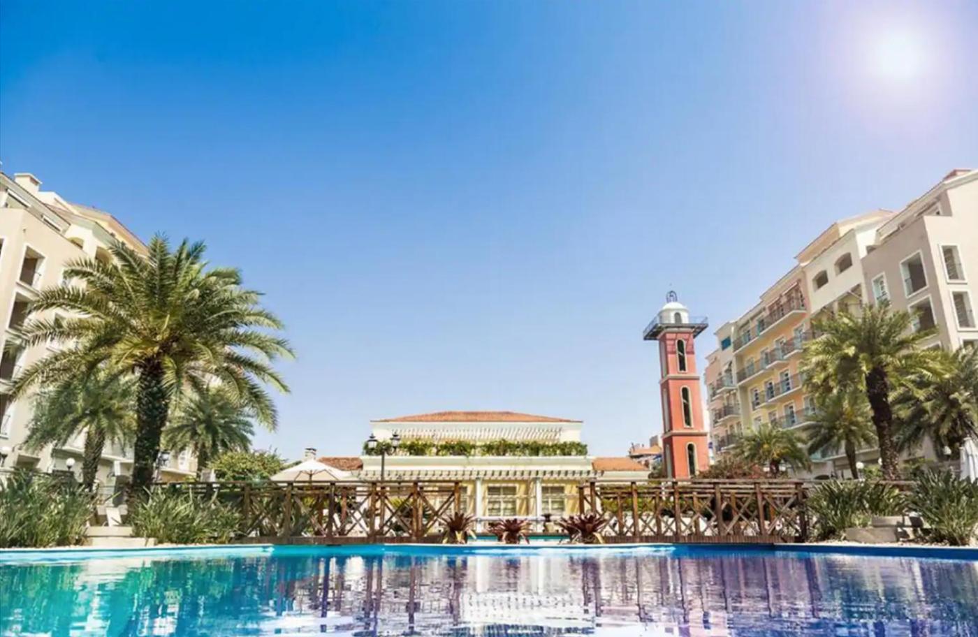 Guests can enjoy the indoor pool and garden at the aparthotel.