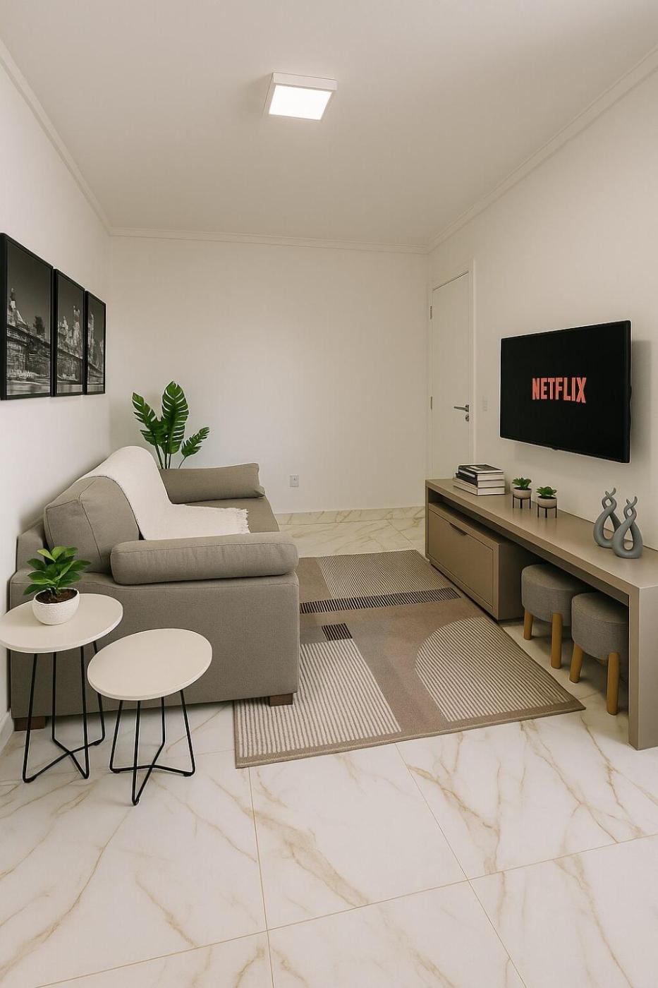 Two-Bedroom Apartment. This air-conditioned apartment features 1 living room, 2 separate bedrooms and 1 bathroom with a shower. In the well-fitted kitchen, guests will find a stovetop, a refrigerator, kitchenware and an oven. The apartment features a tea and coffee maker, a dining area, a wardrobe, a flat-screen TV with cable channels, as well as city views. The unit has 3 beds.