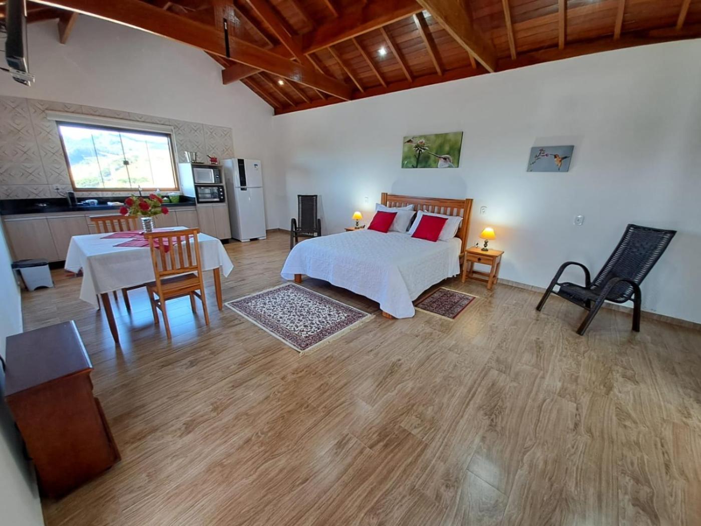 Boasting garden views, Chalés Conforto Mineiro provides accommodation with patio, around 46 km from Celeiro Shopping Monte Verde. This chalet offers free private parking and a 24-hour front desk. The accommodation features a hot tub, free WiFi throughout the property and family rooms.