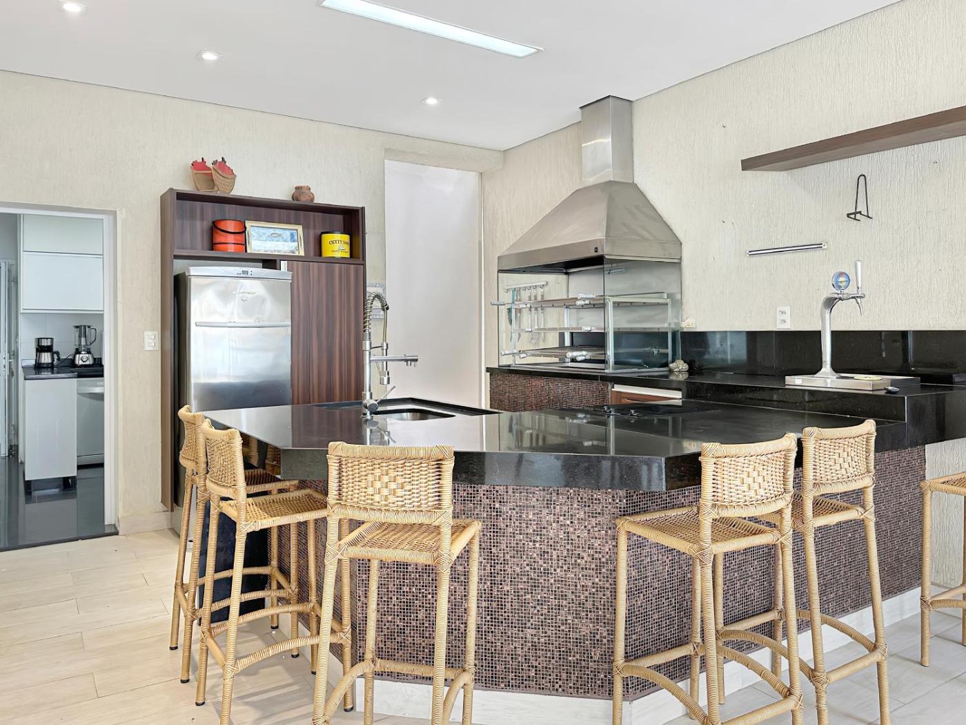 Set in Guarujá, 300 metres from Enseada Beach and 5.4 km from Guaruja Bus Station, 200m do mar - AC - Piscina - Churrasqueira - 1 Suite offers spacious air-conditioned accommodation with a balcony and free WiFi. Boasting a shared kitchen, this property also provides guests with a year-round outdoor pool. The property is non-smoking and is located 44 km from Restingas of Bertioga Estadual Park.