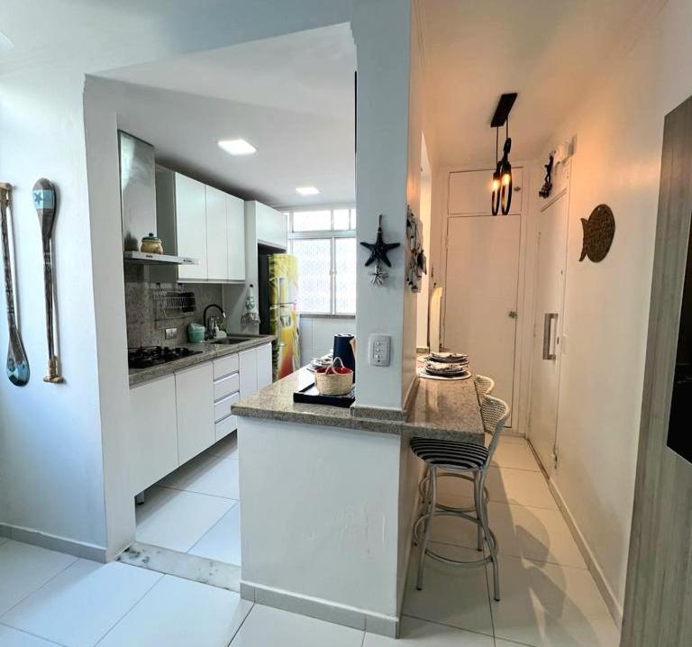 Apto 1 Quadra da Praia Pitangueiras features accommodation located 600 metres from the centre of Guarujá and offers a garden and a shared lounge. Located in the Pitangueiras district, the property provides guests with access to a solarium. The apartment provides a sun terrace, a 24-hour front desk, and free WiFi is available throughout the property.