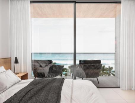 One-Bedroom Apartment. The pool with a view and sauna are the standout features of this apartment. The apartments kitchen, which features kitchenware and a microwave, is available for cooking and storing food. The air-conditioned apartment provides a flat-screen TV with streaming services, a minibar, a dining area, a wardrobe as well as sea views. The unit offers 2 beds.