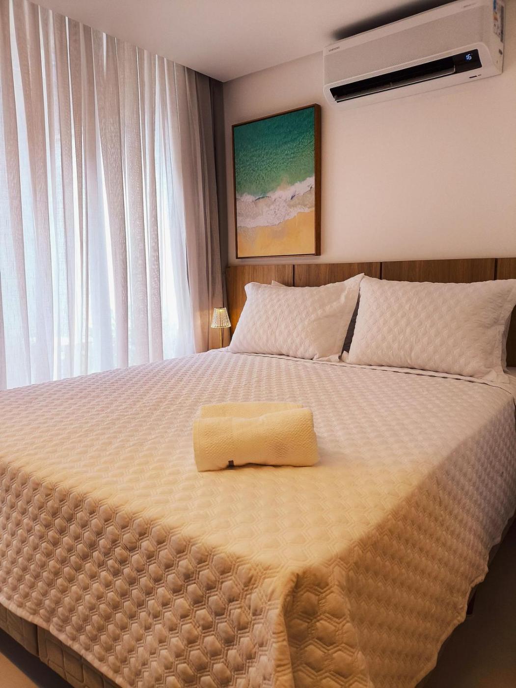 Situated in João Pessoa, 100 metres from Bessa Beach and 10 km from Train Station, Alta Marine - Flats térreo pé na areia offers a rooftop pool and air conditioning. This beachfront property offers access to free WiFi and free private parking. The accommodation features a 24-hour front desk and a lift for guests.
