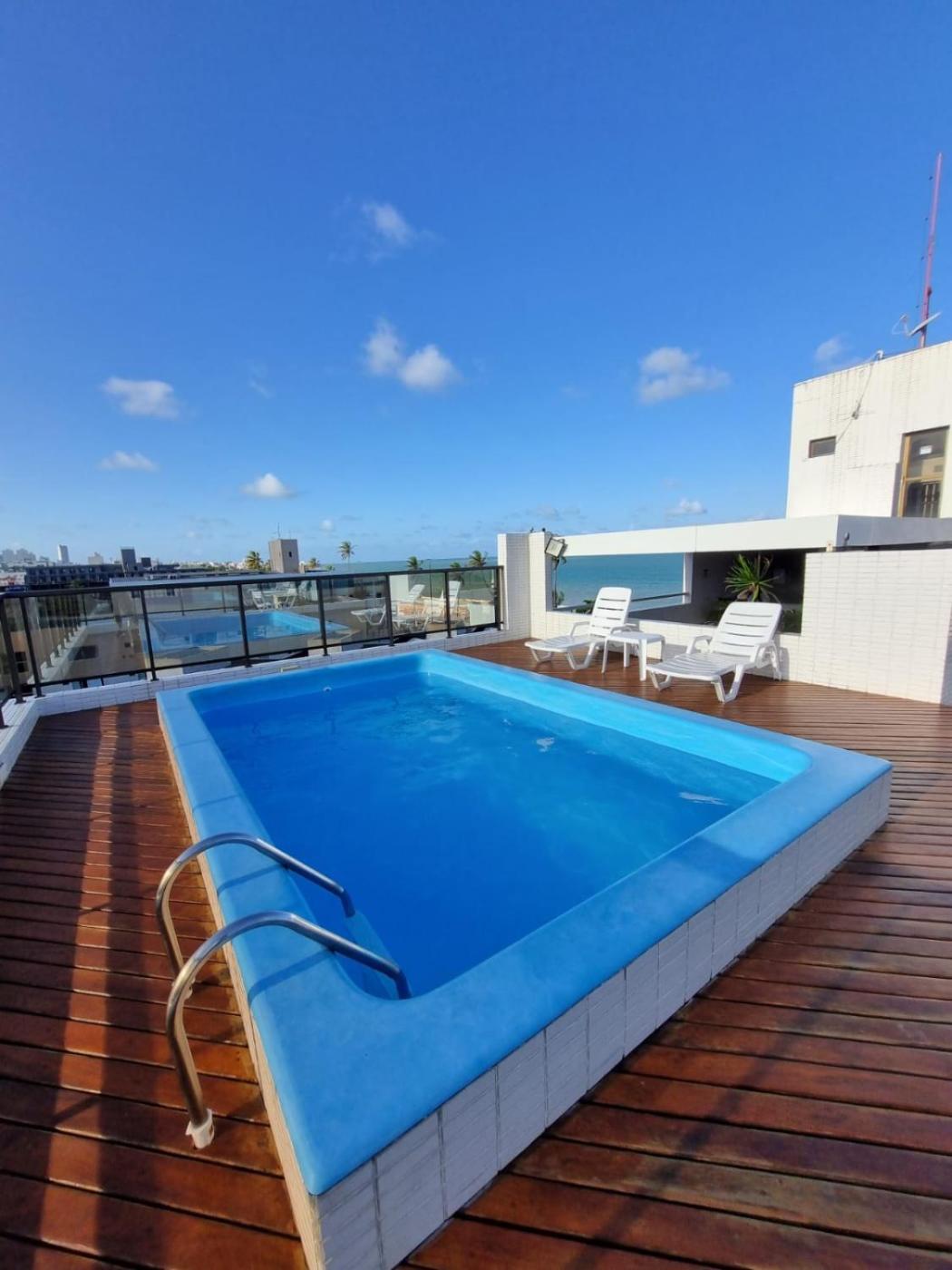 Located in João Pessoa, Flat à beira-mar e perto de tudo provides accommodation with a rooftop pool and sea views. This beachfront property offers access to free WiFi and free private parking. The apartment features a sun terrace and a 24-hour front desk.