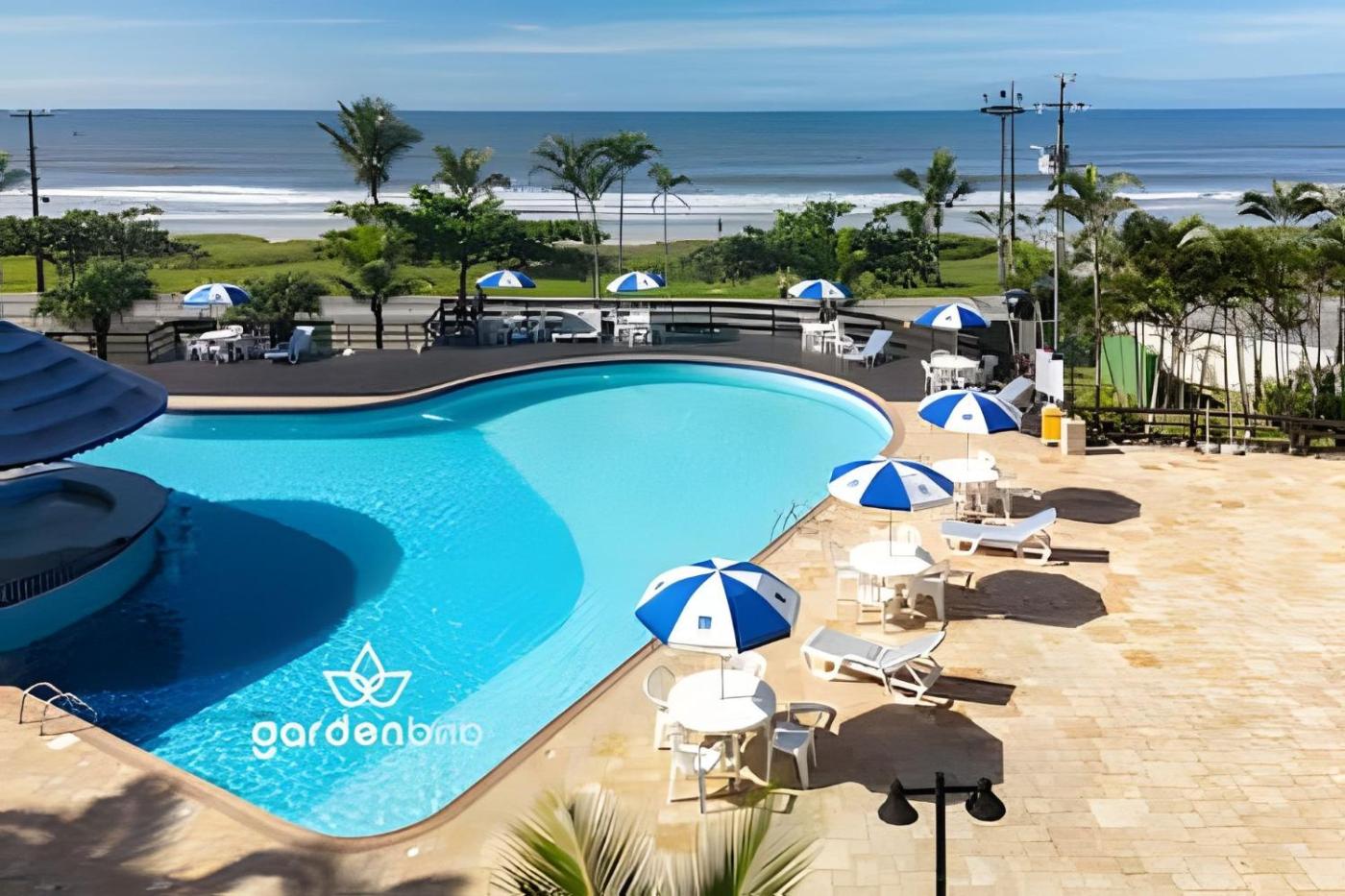 Located in Matinhos, CondomÃnio Resort, Cobertura com Piscina, 2 vagas provides accommodation with private pool, free WiFi and free private parking for guests who drive. This apartment features a garden.
