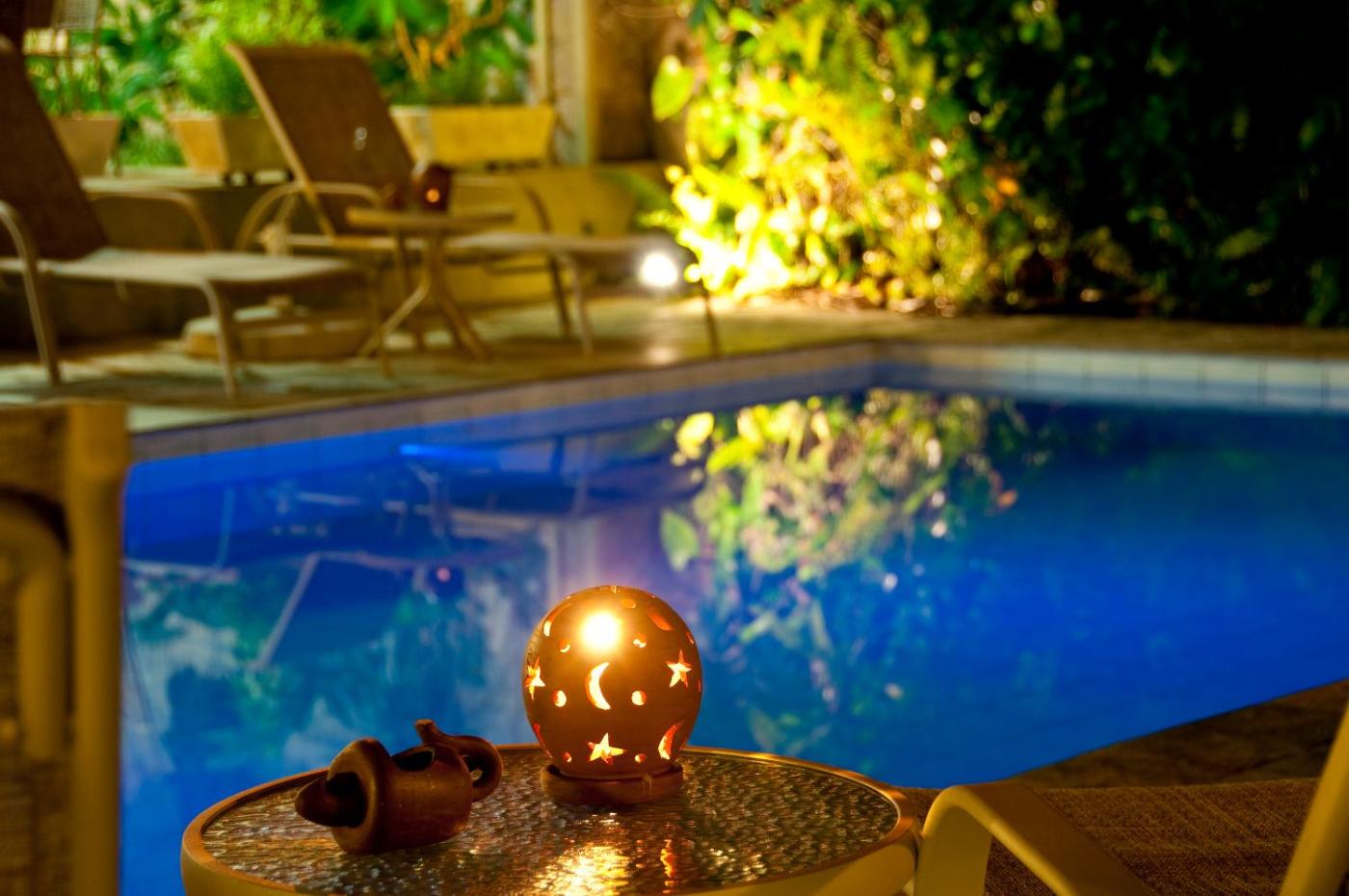 Guests can enjoy the Pousada’s outdoor swimming pool, which is surrounded by lush gardens.