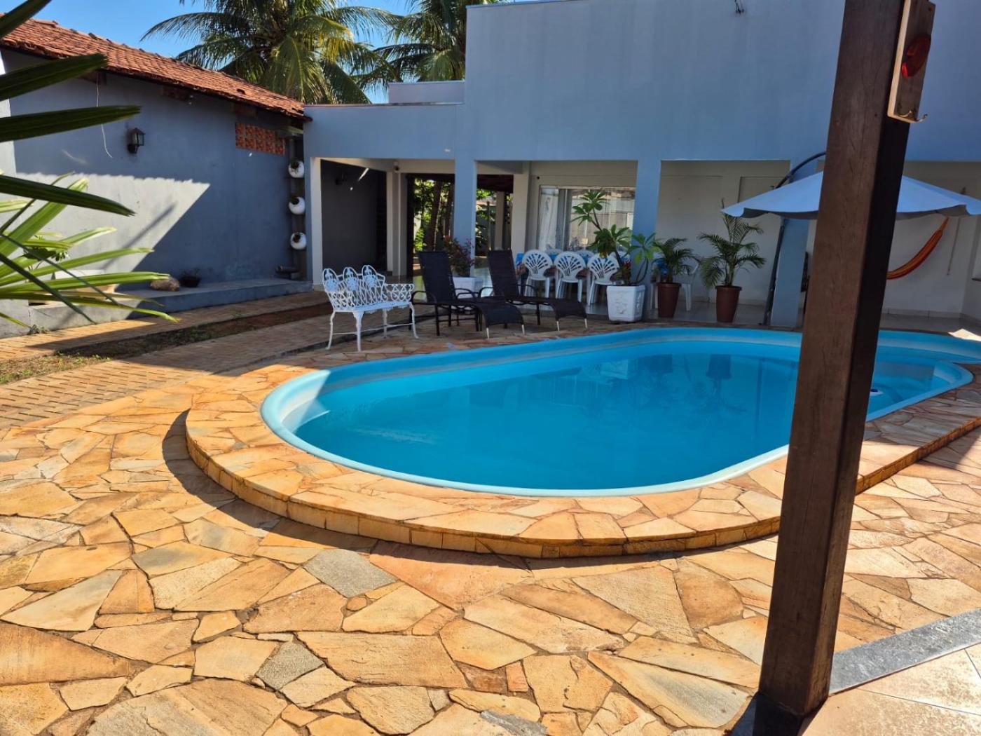 Featuring air-conditioned accommodation with a private pool, garden view and a balcony, Recanto Flor de Laranjeira - o canto que encanta Palmas-TO isin Palmas. This recently renovated holiday home is located 4.5 km from Palmas Bus Station and 2.3 km from Cesamar Park. The holiday home also offers free WiFi, free private parking and facilities for disabled guests.