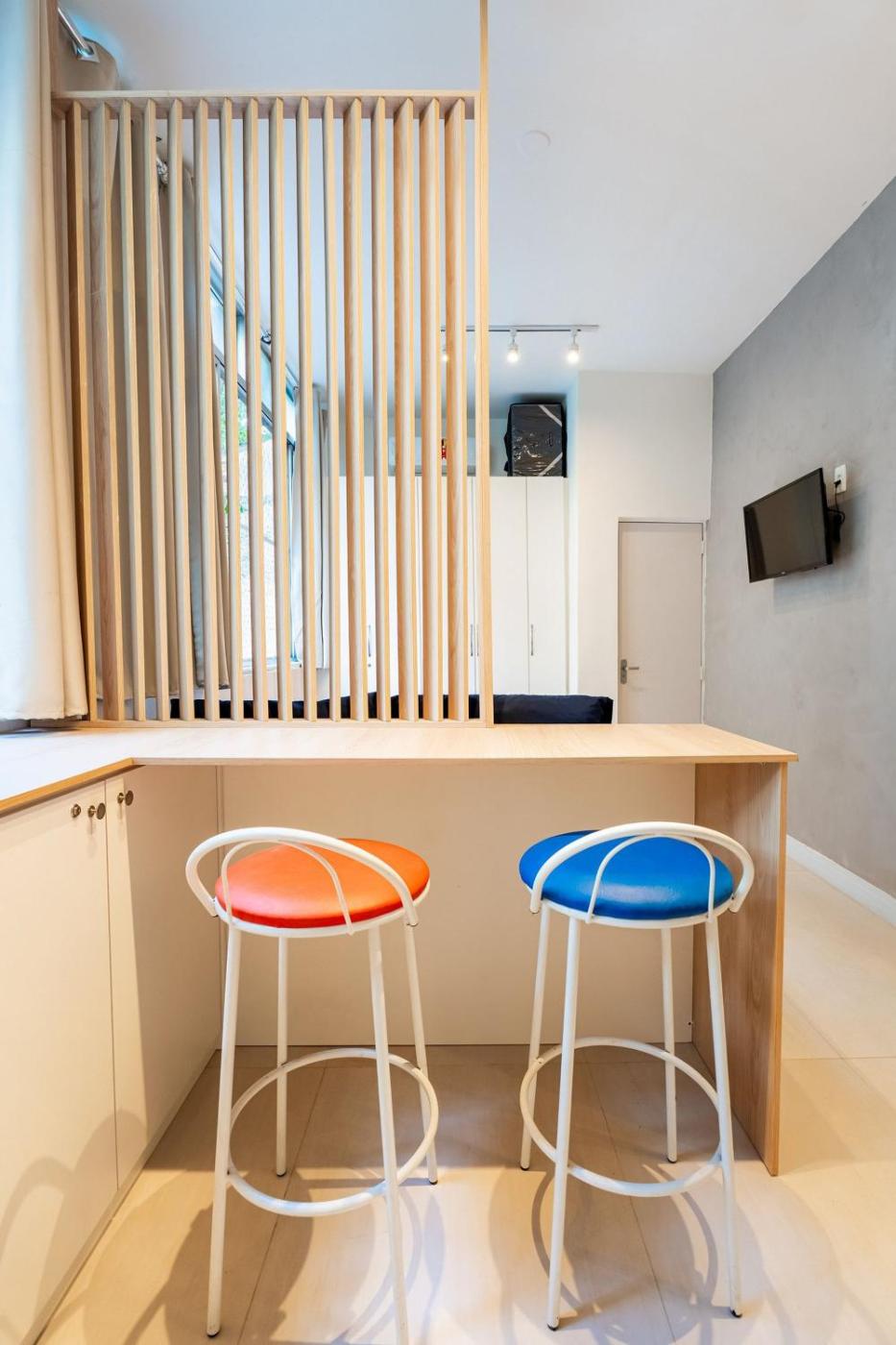 Apartment. The air-conditioned apartment features 1 bedroom, 1 bathroom, a kitchen and a dining area. The fully equipped kitchen has a stovetop, a refrigerator and a microwave. This apartment provides a coffee machine and a TV with streaming services. The unit offers 1 bed. ;