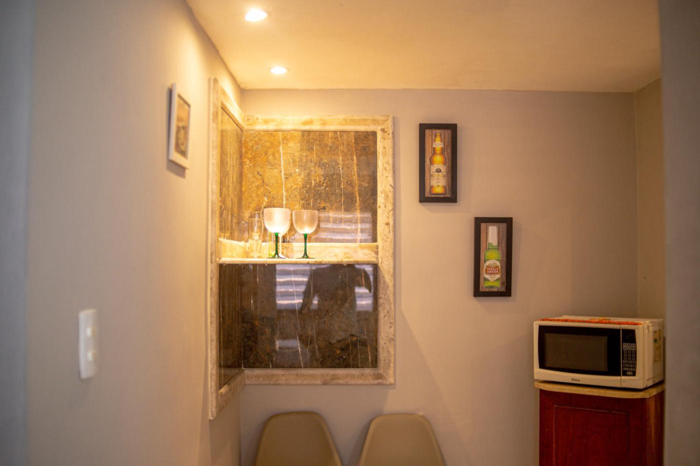 Apartment. This air conditioned apartment has a seating area with a flat-screen cable TV and DVD and Blu-ray players, a dining area and a full kitchen with an oven, a microwave and a refrigerator. Bathroom also comes with a shower and a hairdryer.