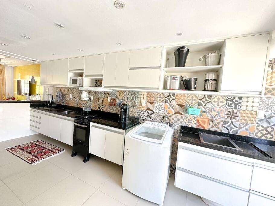 O mar se encontra aqui!!! is a beachfront property located in Salvador, 200 metres from Flamengo Beach and 20 km from Bus Central Station. This holiday home features a private pool, a garden and free private parking. The accommodation offers private check-in and check-out and a minimarket for guests.