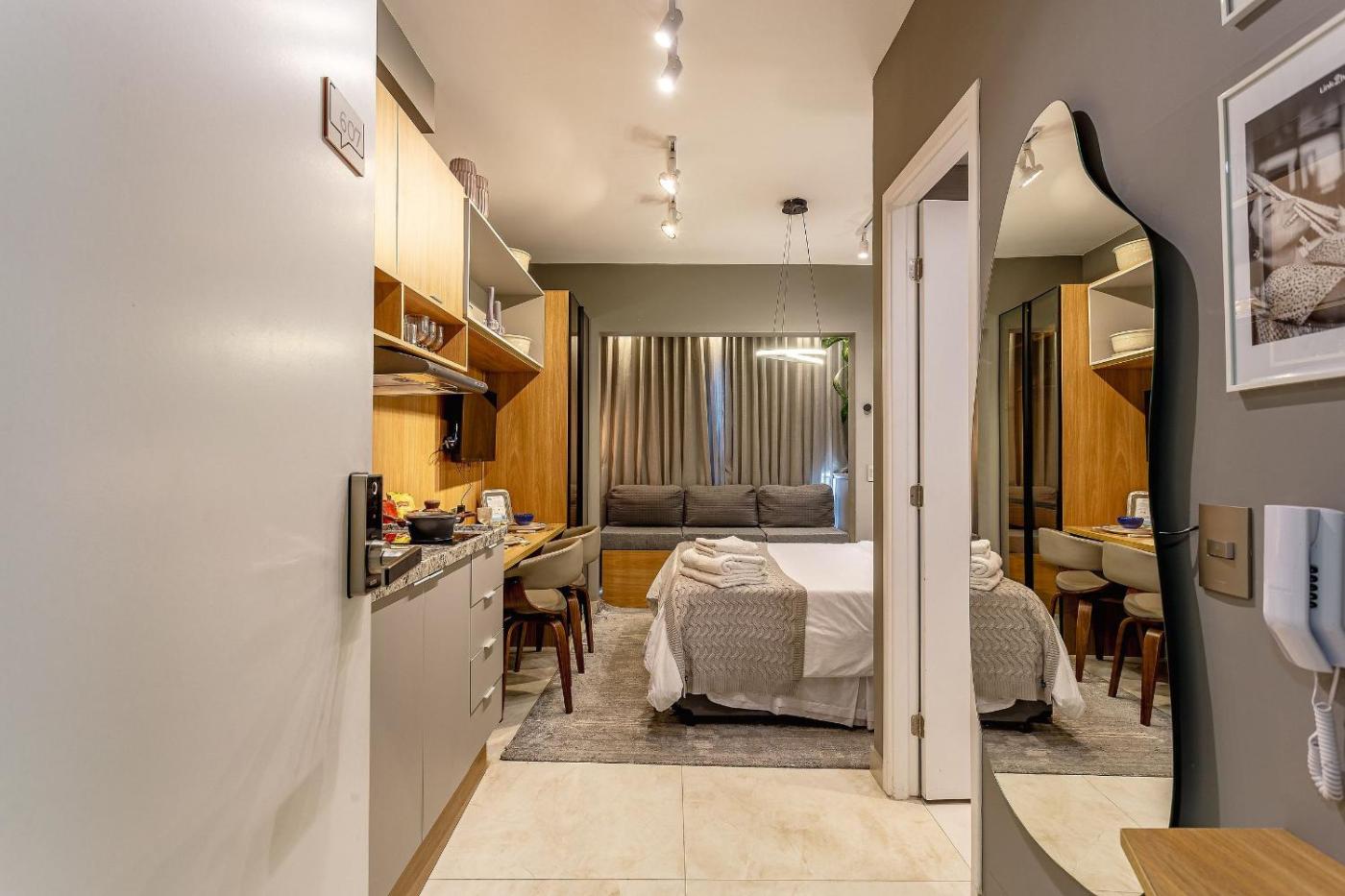 Alto Padrão República offers accommodation within 1.3 km of the centre of Sao Paulo, with free WiFi, and a kitchen with a microwave, a fridge and a stovetop. The air-conditioned accommodation is 200 metres from Copan Building. The apartment has an outdoor swimming pool, sauna and a 24-hour front desk.