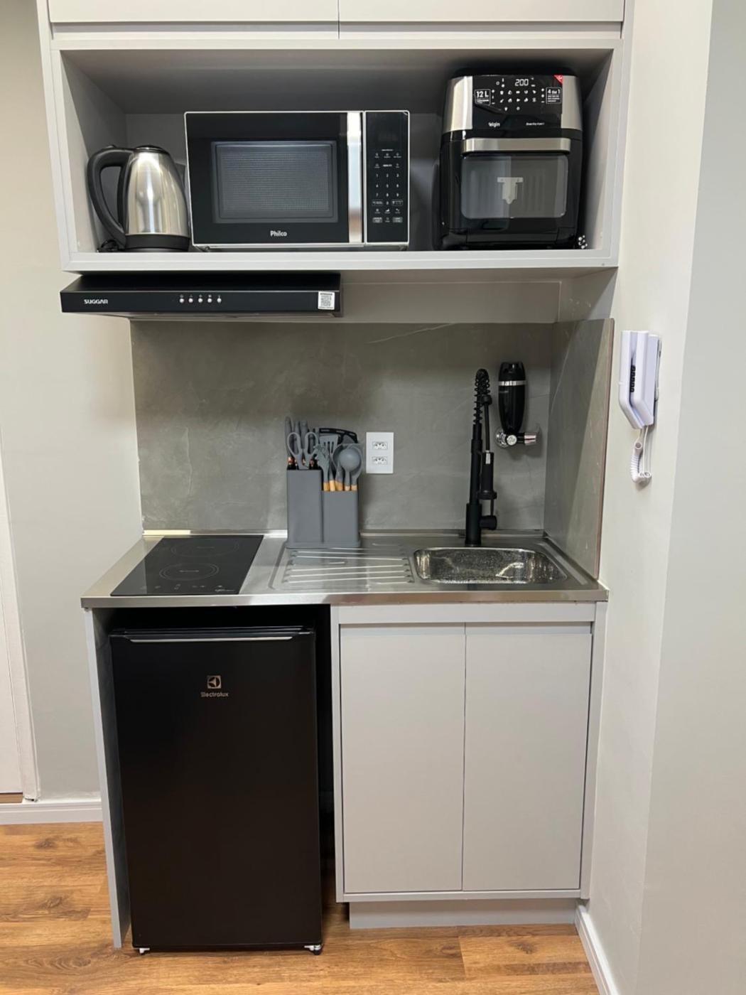 Deluxe Studio. The studio features air conditioning, a washing machine, as well as a private bathroom boasting a shower and a bidet. The well-fitted kitchen has a stovetop, a refrigerator, kitchenware and an oven. The studio provides a private entrance, soundproof walls, a minibar, a tea and coffee maker and a flat-screen TV. The unit has 1 bed. ;