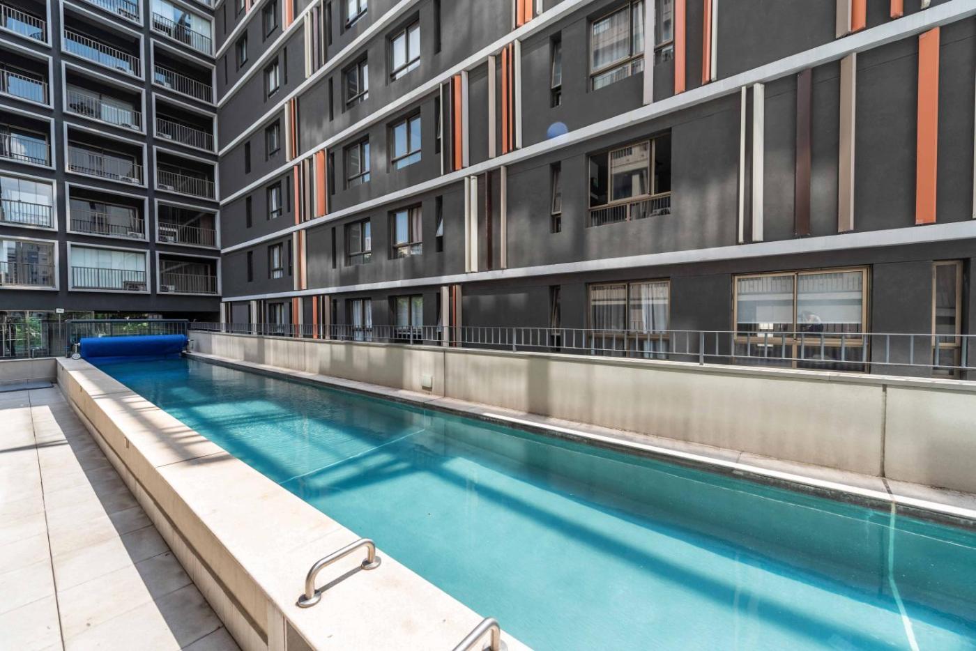 The apartment also provides an outdoor swimming pool and a solarium for guests to relax in.