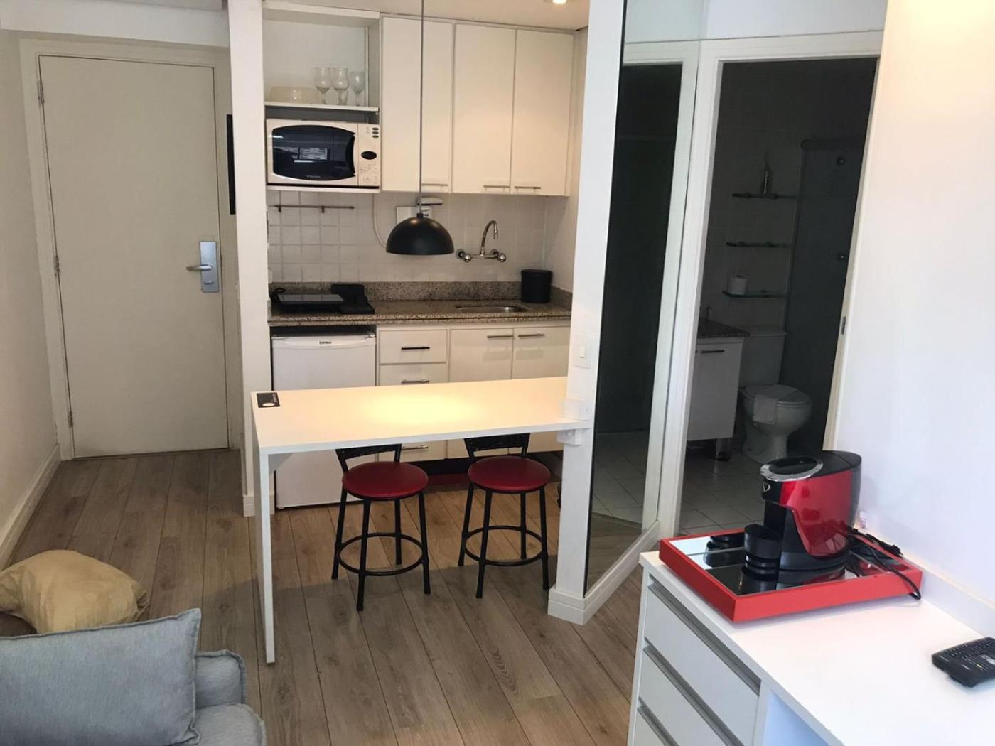 The rooms in the hotel are fitted with a coffee machine.rooms at Morada Times Square Moema - Flat em hotel luxuoso have air conditioning and a desk.