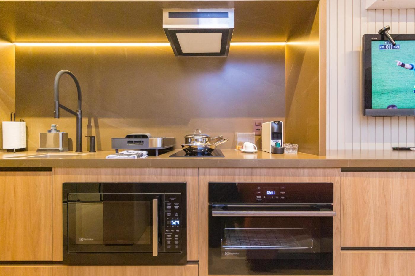 Prime Grand Vitrali Moema features a sauna and a hot tub, as well as air-conditioned accommodation in Sao Paulo, 4.2 km from Ciccillo Matarazzo Pavilion. The property features city views and is 4.2 km from Ibirapuera Park and 6.6 km from MASP Sao Paulo. The apartment has an indoor pool, hammam and a lift.