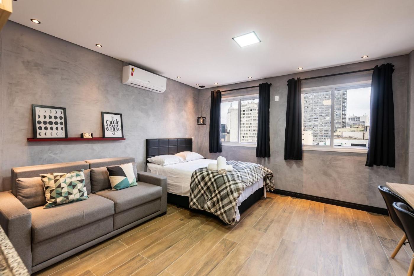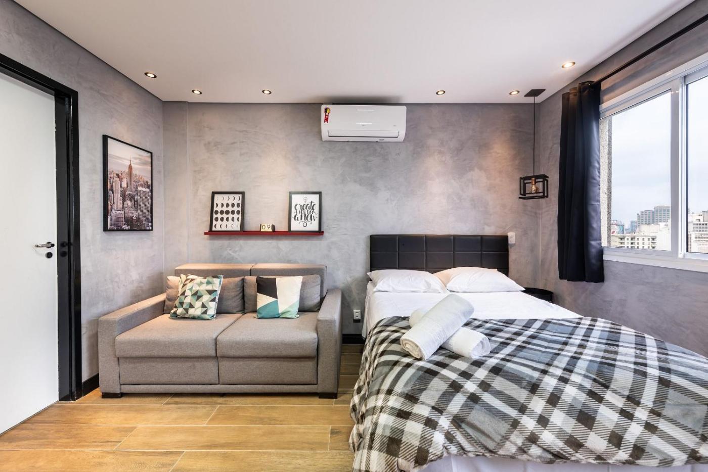 In a prime location in the centre of Sao Paulo, Sky155 Studio moderno com vaga prox. A 25 de março offers a terrace, air conditioning, free WiFi and TV. Guests staying at this apartment have access to a balcony. The apartment provides parking on-site, an outdoor swimming pool and a 24-hour front desk.