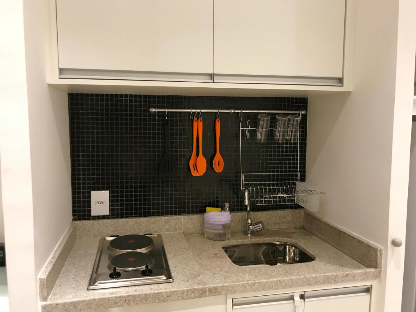 If you prefer to cook in the comfort of your own place, you can make use of the kitchen facilities, which include a fridge, a stovetop and kitchenware.
