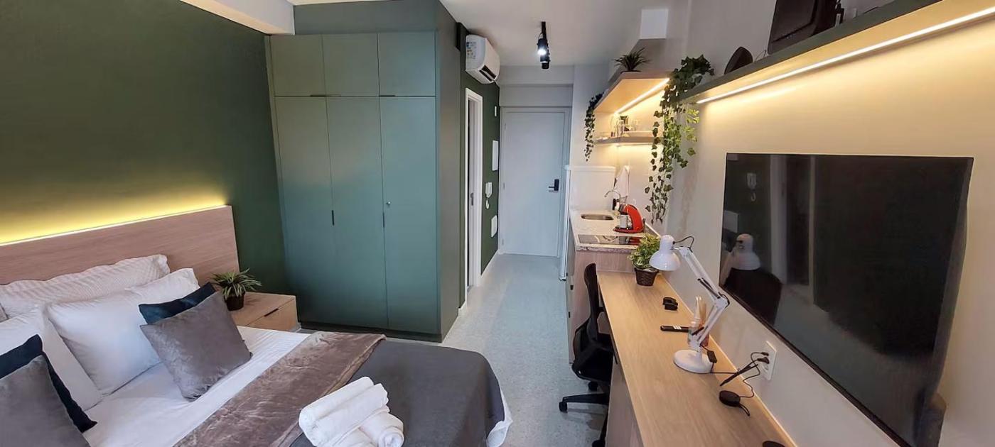 Featuring air-conditioned accommodation with a balcony, Studio Conceito Completo em SP República 911 is located in Sao Paulo. This apartment also features a private pool.