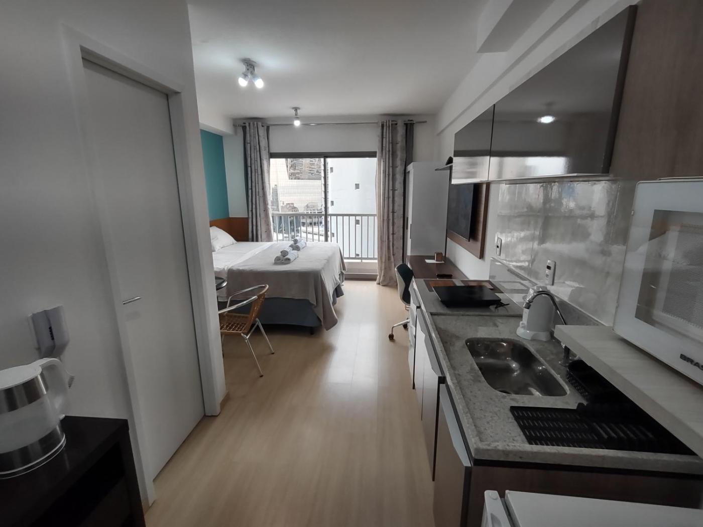 Boasting air-conditioned accommodation with a balcony, Studio Metrô Faria Lima is situated in Sao Paulo. Featuring a business centre, this property also provides guests with a year-round outdoor pool. The accommodation offers a lift and full-day security for guests.