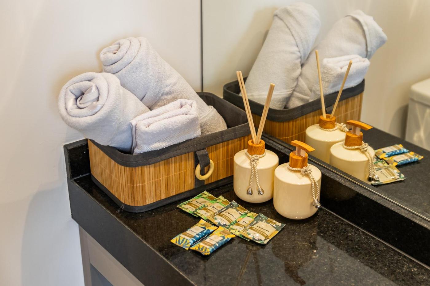 One-Bedroom Apartment. The air-conditioned apartment has 1 bedroom and 1 bathroom with a shower and a hairdryer. Guests will find a stovetop, a refrigerator, kitchenware and a microwave in the well-equipped kitchen. The apartment also comes with a barbecue. This apartment features a washing machine, flat-screen TV with streaming services, city views, as well as winechampagne for guests. The unit has 1 bed.