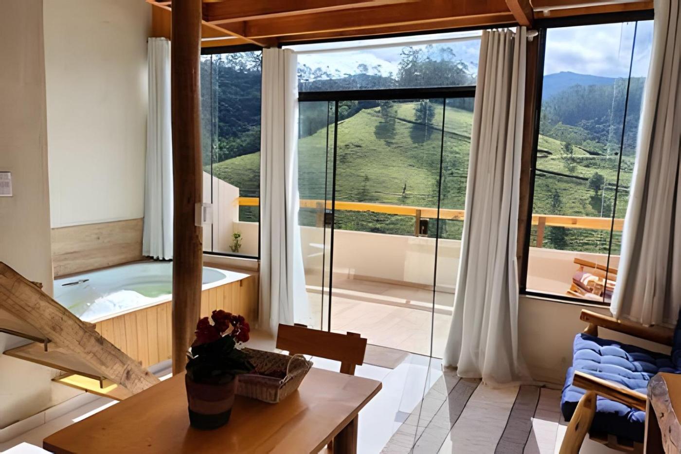 Recanto dos Canários - CHALÉ 2 has 1 bedroom, 1 bathroom, a well-equipped kitchen, a flat-screen TV, and a spa bath. For added privacy, the accommodation features a private entrance.
